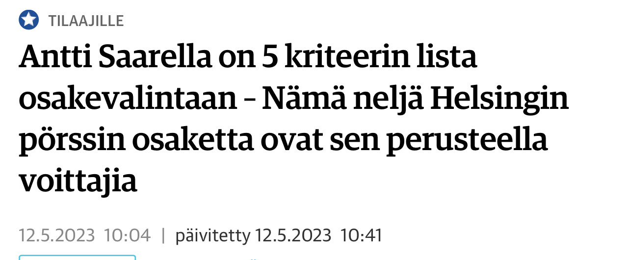 Nå. En kursalarm på 10 € for Kojamo, sat for længe siden med kommentaren ”den falder i hvert fald ikke så langt, men bare for sjov”, blev udløst.