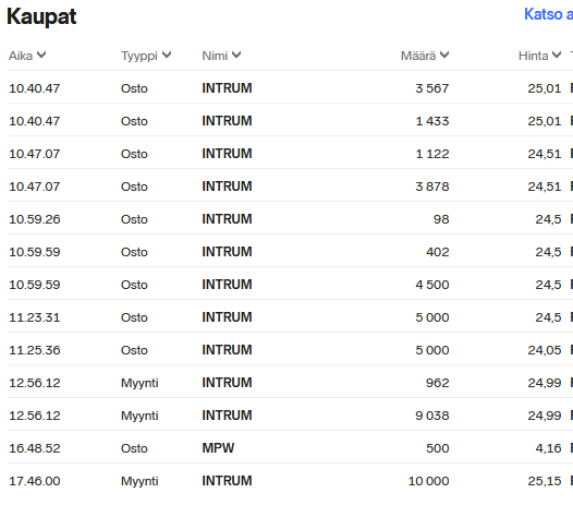 Tänään tuli veivailtua Intrumin kanssa, kun shorttarit ja veromyyjät tarjoilivat taas ilman uutisia reipasta -8% dippiä.