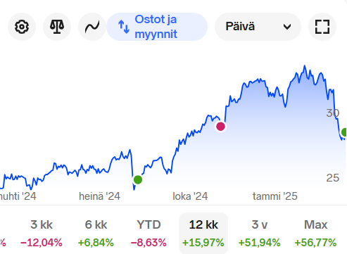 Samalla asialla olin. Tosin pienemmällä rahalla ja B-osaketta ![]()
