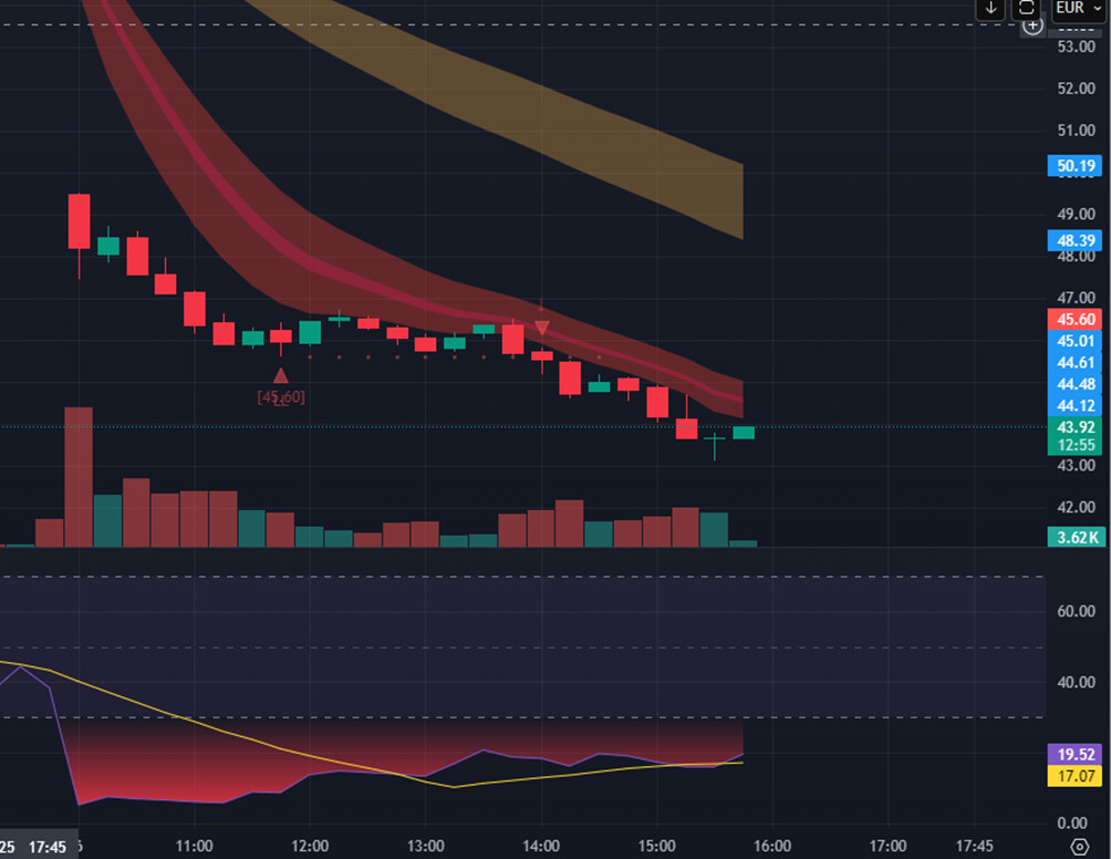 Edit: Aamuinen positio on nyt yli tuplattu päivän mittaan kh @ 45,20 €. Isolla miinuksella juuri nyt mutta jään seuraamaan.