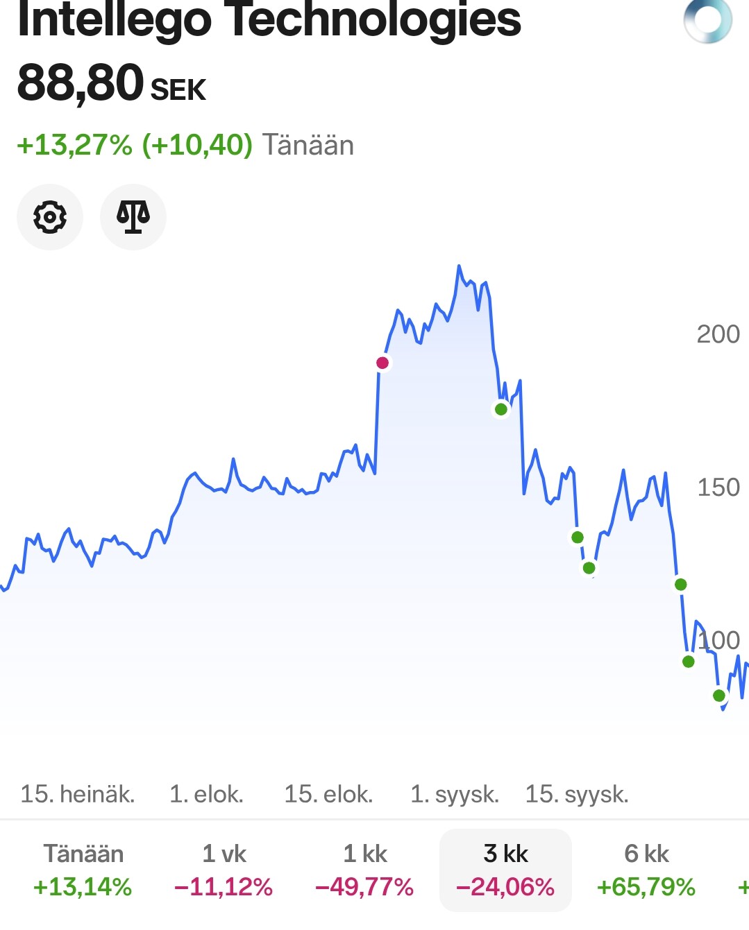 Kun olen aktiivisena Intellegon ketjussa ollut niin tässä kanssa omat ostoni viime aikaiseen laskuun. yhteensä 1500 kpl. Aikaisempien 25 sekillä ostettujen päälle. Pienen myynnin tein lähellä huippua josta otin alkupääoman takaisin.