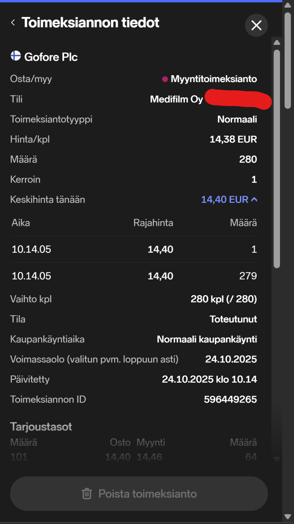 87 kpl @6,34$. Keskihinnan nosto, positio nyt 487 kpl KH 4,81$.