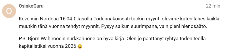P.S. Björn Wahlroos’s Nurkkahuone is a good book. I have already decided to truly become a capitalist in 2026 ![]()
