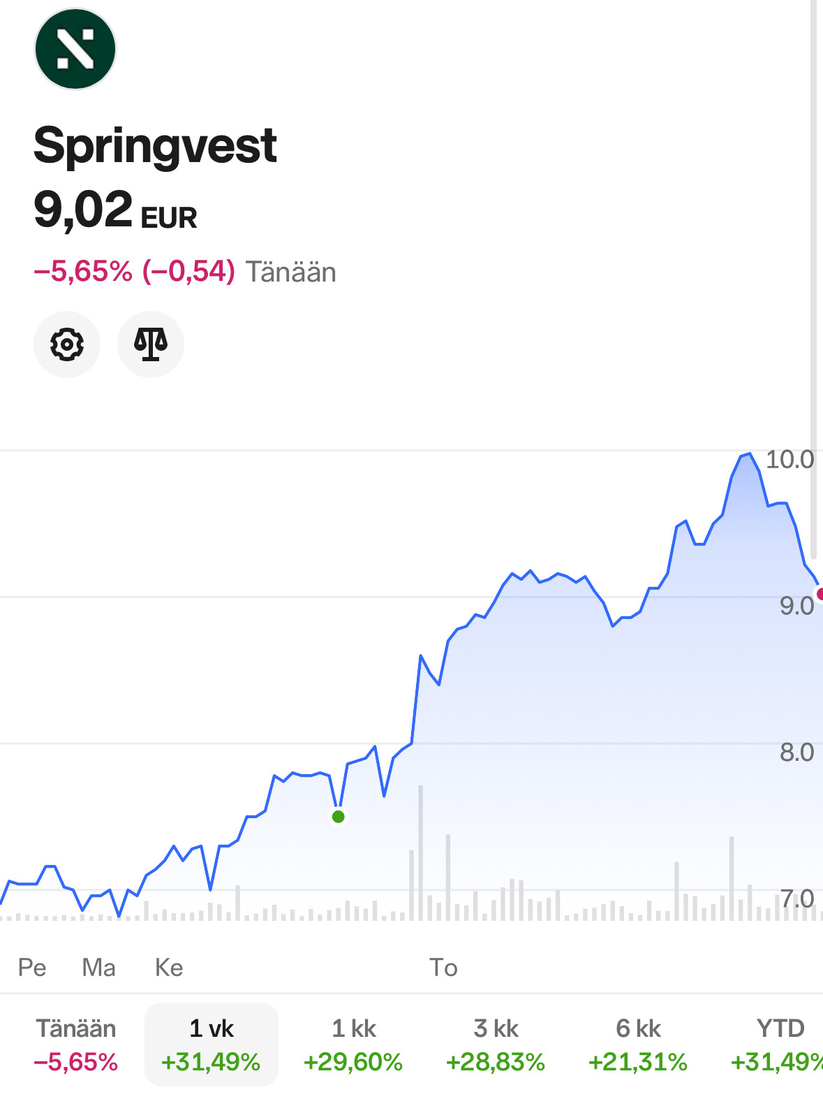 I looked enough to see that Springvest doesn’t look completely hopeless even if the value of the Verge / Donut Labs connection were calculated as zero. Profitable and no debt; I didn’t notice any massive red flags. Valuation risk, of course, as well as the risk related to low startup “buzz” (pöhinä). As a bonus, a fact noticed afterwards: I bought below Inderes’ target price.