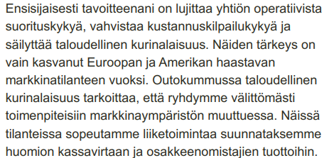 Tiedote 7.5.2024 kertoo, että 1Q2024 lopussa Strategia Phase II säästöissä on päästy tasoon 233 MEUR, ja tavoite nostetaan 350 MEUR. Tämän päivän 30.10 tulostiedote kertoo 265 meur saavutetusta tasosta.