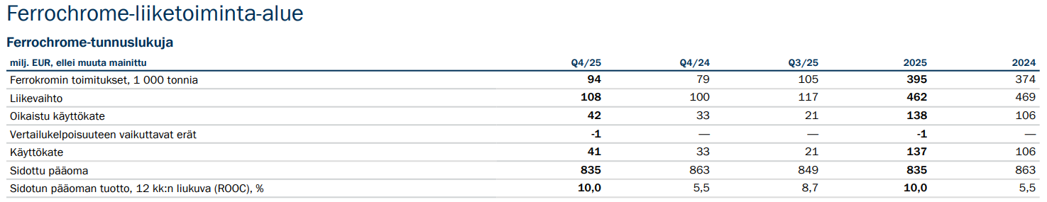 Ferrokrom förbättrade sig fint både mot 3Q25 och 4Q24.