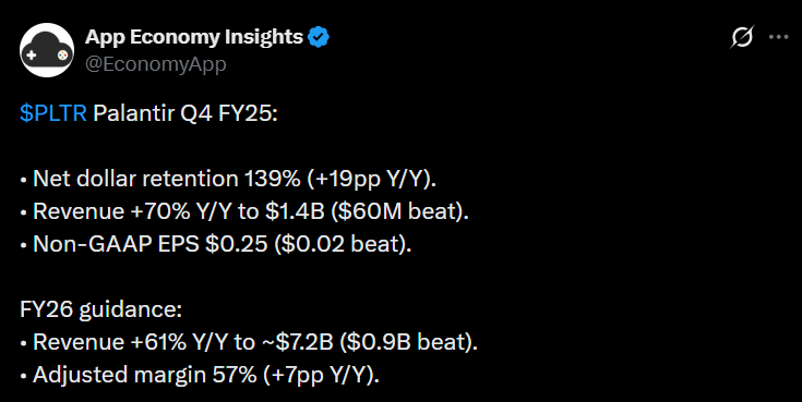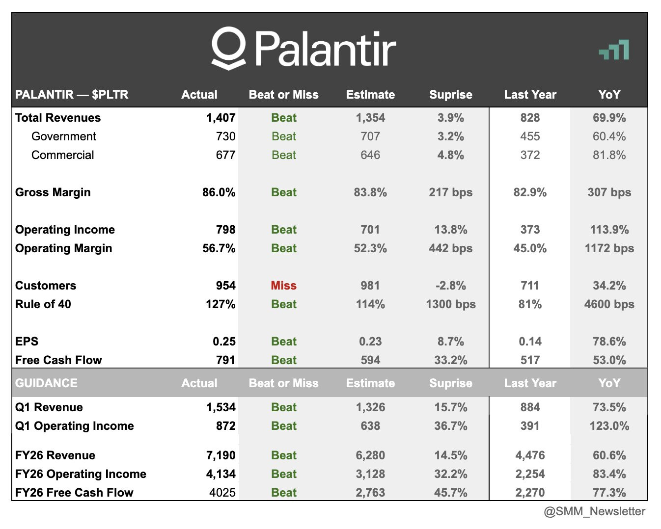 Palantir tais vetää todella kovan tuloksen, ainakin se ylitti odotukset kirkkaasti.