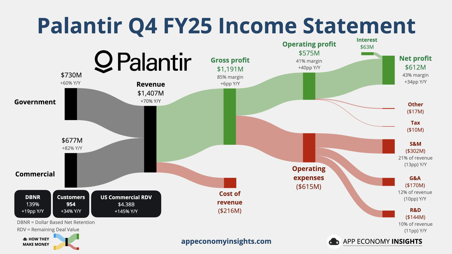Kasvu on ollut aidosti oikein kovaa ja erityisesti Amerikan markkinoilla, jossa yritysasiakkaat ovat innostuneet palveluista toden teolla. Palantir kykenee tekemään voittoa samalla kun se laajenee vauhdilla ja kehittyy, lisäksi se on tekemisessään täysin omassa luokassaan - vauhti on kovaa ja samalla todella tehokasta, ei päätöntä roiskimista… kilpailijoiden on vaikea tulla siihen säätämään.