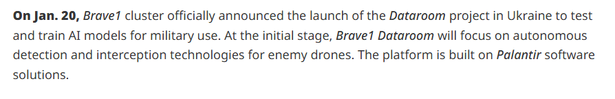 Ukraina kehitää nyt kattavaa drone kilpeä, kun naapuri väsyttää ja näivettää Ukrainaa. Ukraina kehittää kilpeään AI:n avulla, ja SW-alustana on Palantir.