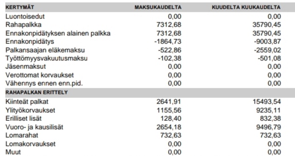Toki eri ala kyseessä, mutta antaa hyvin perspektiiviä aiheeseen - lisät todellakin vaikuttavat paljon - etenkin, jos sattuu tekemään kolmivuorotyötä & vähänkin ylitöitä. Tässäpä oma tilinauhani vuoden ensimmäiseltä kuudelta kuukaudelta;