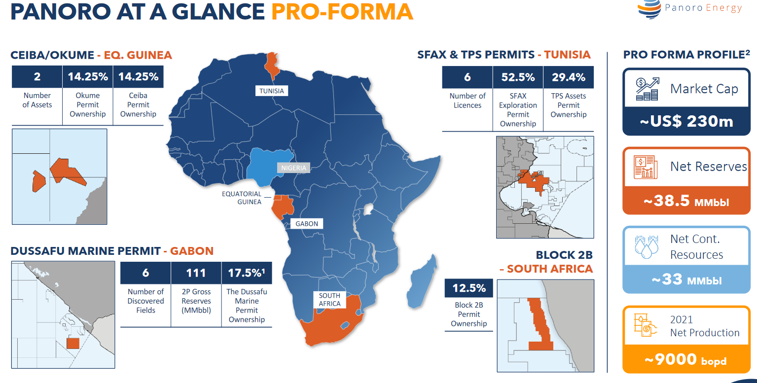 Panoro Energy ASA on itsenäinen etsintä- ja tuotantoyhtiö, jonka kotipaikka on Lontoo ja joka on listattu Oslon pörssin päälistalle tunnuksella PEN. Panorolla on tuotanto-, etsintä- ja kehityshankkeita Afrikassa, nimittäin tuotanto-osuus Block-G:ssä Päiväntasaajan Guinean edustalla, Dussafu-lisenssi Gabonin etelärannikolla, OML 113 Nigerian länsirannikolla (myytävänä, edellyttää toteutumista), TPS:n operoimat kohteet, Sfax Offshore Exploration Permit ja Ras El Besh Concession Tunisian edustalla sekä osallistumisosuus etsintälohko 2B:ssä Etelä-Afrikan edustalla.