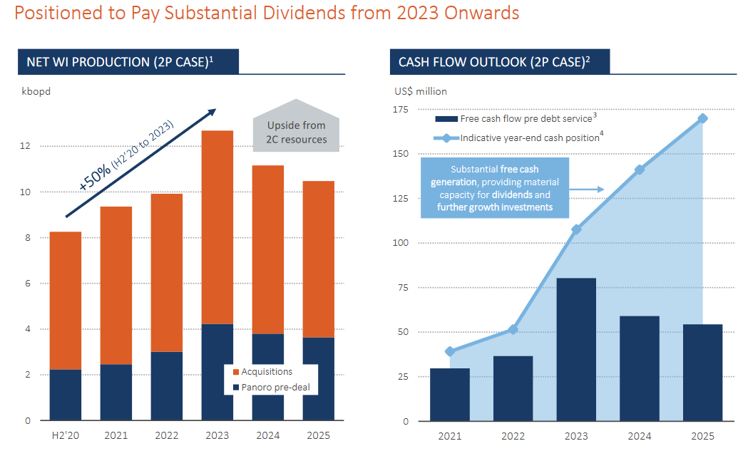 Approximately 903,000 barrels were sold by a Panoro subsidiary at US$ 65 per barrel, realizing approximately US$ 59 million in cash net to Panoro. These will be reflected as a receivable on the Q1 2021 balance sheet with cash inflows realizing in Q2 2021. Panoro intends to provide revenue, production and operating metrics on a pro-forma basis in our next operating and financial update from January 1st to show the impact of the acquisitions from Tullow.