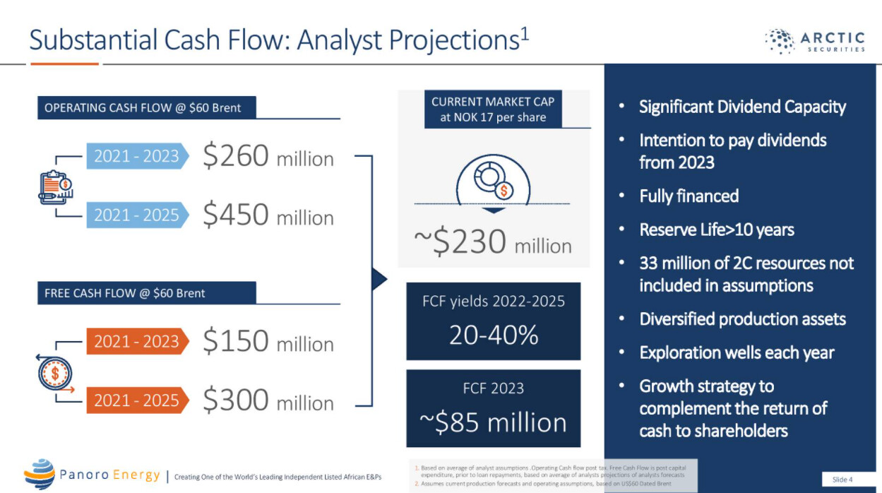 Laskelmistahan käy ilmi, mikä riski tässä on. Öljyn hinta on kaikki kaikessa. Toki Panorolla on alhainen OPEX. Jos öjly tipahtaa 40 USD tasolle takaisin, niin edelleen tehdään tulosta, mutta osinkohommat menee kyllä jäihin.