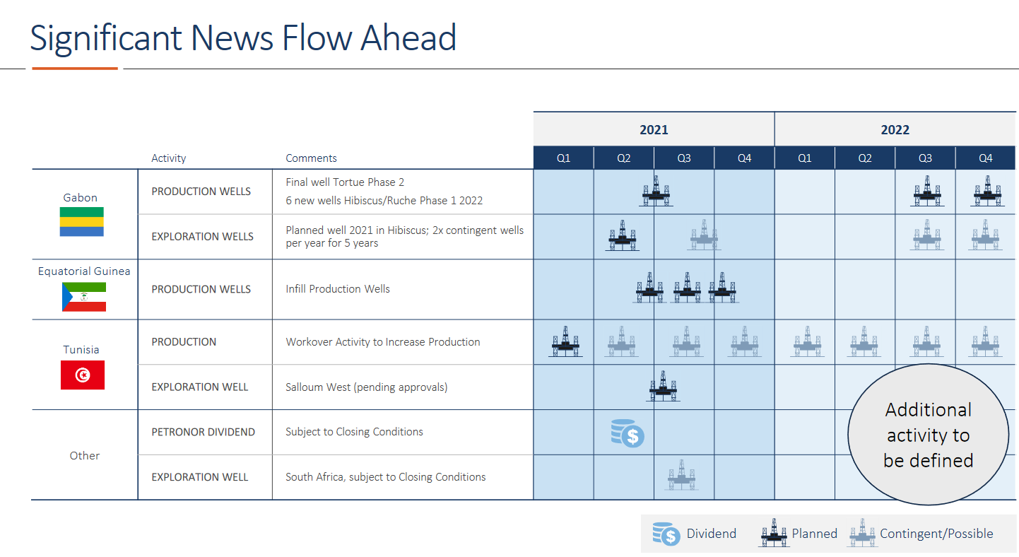 2023 vuodelle päivätuotto on tän hetkisen arvion mukaan 12-13 000 bbl/d. Tähän lisäksi kurssia nostattavat mahdolliset varastojen lisäykset tai lisälöydökset. Dussafussa lähdössä koeporaukset tässä ihan lähiaikoina. Seismisten mukaan olemassa oleva Hibiscus kenttä olisi huomattavasti nykyistä tietoa suurempi.