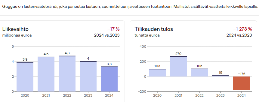 Let’s talk about some minor matters from Panostaja’s perspective. Papu Design, Gugguu’s domestic competitor, which is minority-owned by Panostaja (43% ownership stake), filed for bankruptcy. It makes one wonder if Panostaja will have to write down its ownership in Gugguu at some point, as Gugguu has also been struggling in this demand situation for a long time.