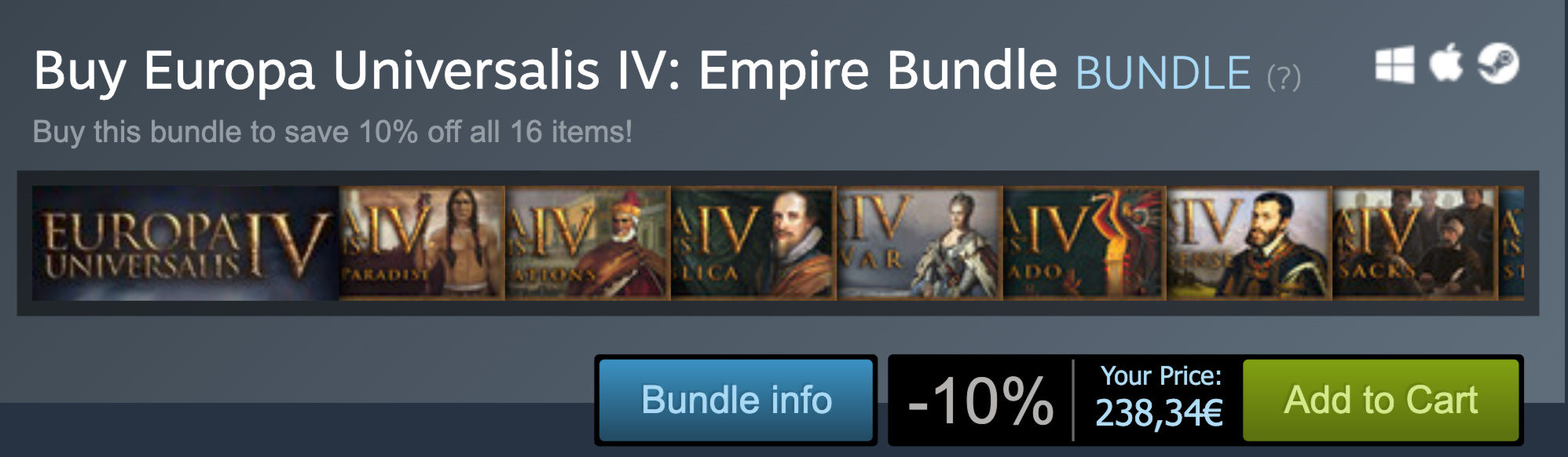 Sijoittajan näkökulmasta Paradoxin malli on ällistyttävän hyvä. Käsittääkseni strategiapelien kehitys ei ole kovin suuren joukon tai budjetin hommaa, joten ei niitä tarvitse myydäkään miljoonittain. 60 euroa maksavan pelin päälle tulee läjäpäin suht helposti tuotettavia lisäosia, jotka maksavat yleensä 20 euroa. Esimerkiksi vuonna 2013 julkaistun Europa Universalis IV:n päälle on tullut niin paljon DLC:tä vuosien varrella, että koko paketti maksaa Steamissa edelleen 240 EUR!