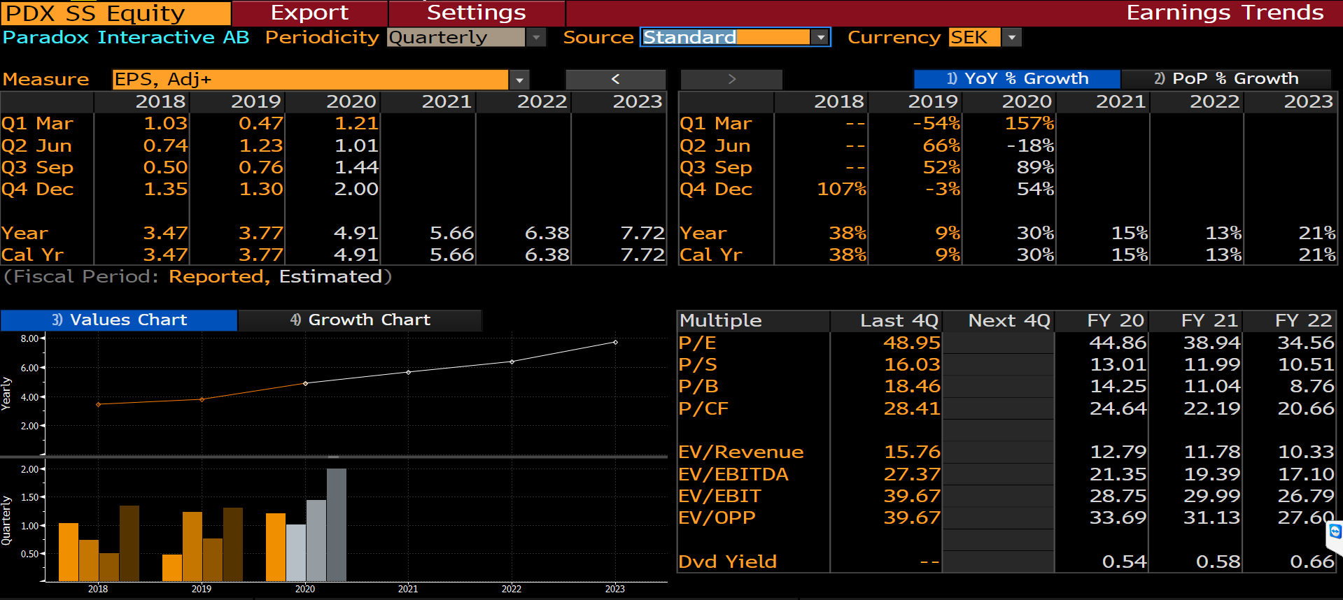 Korkean P/E:n voi oikeuttaa vain kasvu, ja kyllä tämä tarvitsi aiemmilla kurssitasoilla vähintään ihmeen täyttääkseen vaatimukset. Pelit ovat kuitenkin non-essential, ja stay-at-home -talous ei ole harkinnanvaraisen kulutuksen puolella. Tämä koskee pelejäkin, väitän.