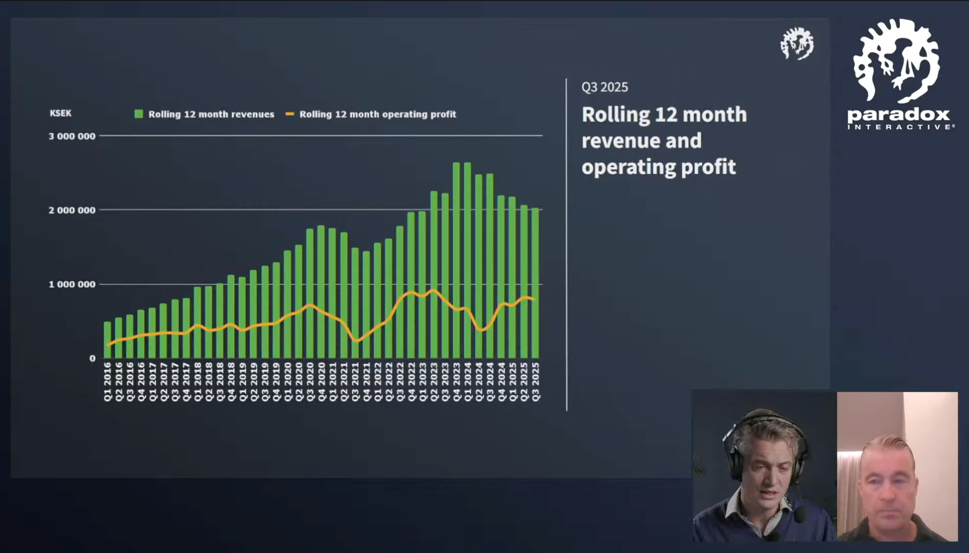 Uskon kyllä, että Grand Strategy coressa on vielä kasvuvaraa, ellei markkinalla tapahdu jotain, mikä muuttaisi Paradoxin monetisaatiomallia toimimattomaksi. Sisäinen kannibalisaatio genren sisällä saattaa myös tulevaisuudessa olla riski, erityisesti jos kuluttajien ostovoimahaasteet markkinalla jatkuvat. Uskon, että Grand Strategy coressa on poikkeuksellisen vahva pelaajaretentio. Nämä pelaajat ovat nyt keski-ikäisiä ja jatkanevat näiden pelien pelaamista 60+ ikään asti, vaikka ympäröivä markkinakasvu pysyisikin hitaana tai stagnoivana.