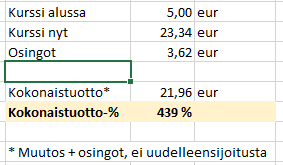 3. Paljonko osake edusti salkkusi kokonaisarvoa ennen/jälkeen arvonnousun?
