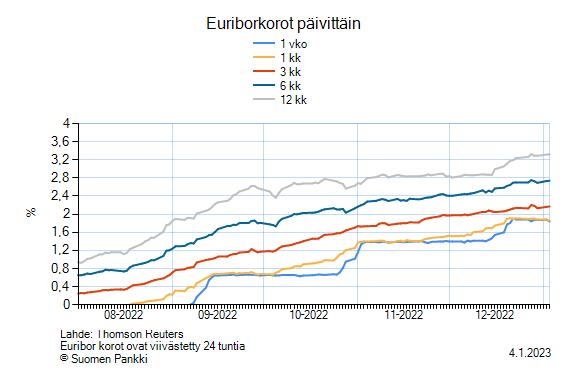 Päivittäistä 3 kk euriborin kehitystä voi seurata Suomen Pankin sivuilta: