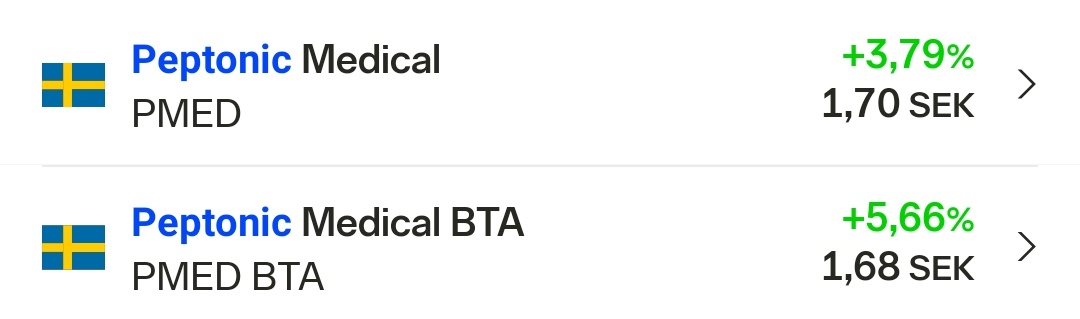 Joo, nyt oli otettu tililtä rahat ja salkkuun ilmestyi Peptonicin BTA (Betalt tecknad aktie) merkinnän verran. Vissiin tuo vielä tuosta siirtyy varsinaiselle Peptonicin riville seuraavan 2-4 viikon aikana.