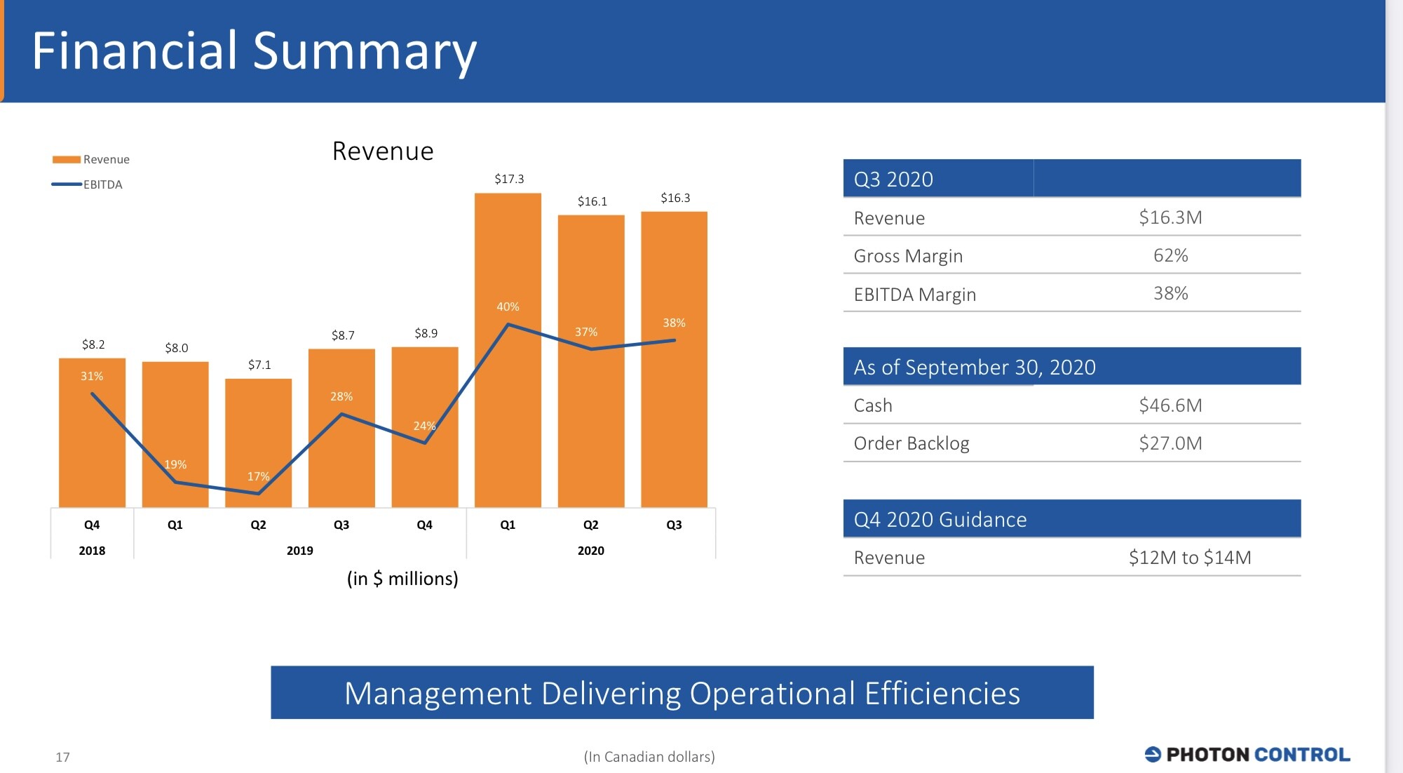 - EBITDA[1] of $6.2 million (Q319: $2.4m) or 38% (Q319: 28%) of revenue and record year-to-date EBITDA of $19.1 million (2019: $5.1m);