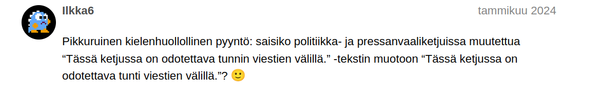 I am worried about the future of the Finnish language, and I’m not alone, which is a great thing. I often use language in an unruly way because I can’t bear to stick to sentences at the level of the dog barks outside or the ball is red. However, my ability to add movement to the ball or adjectives to the dog already starts to push the boundaries of correct writing; I’m already in trouble with semicolons, just like everyone else.