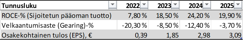 - Pääoman Palautus: Vahva tuloksentekokyky mahdollistaa edellä mainitut osinkojen korotukset ja osakkeiden takaisinostot, jotka ovat sijoittajan kokonaistuoton keskeisiä ajurit.
