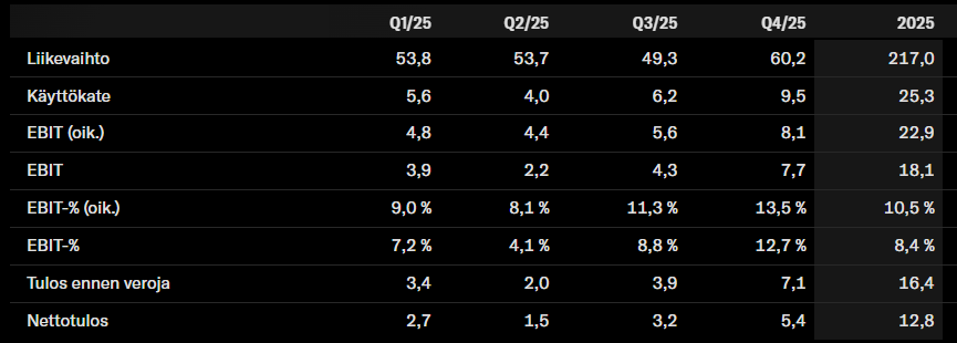 | Q1–Q3 2025 Yhteensä (tiedossa oleva) |