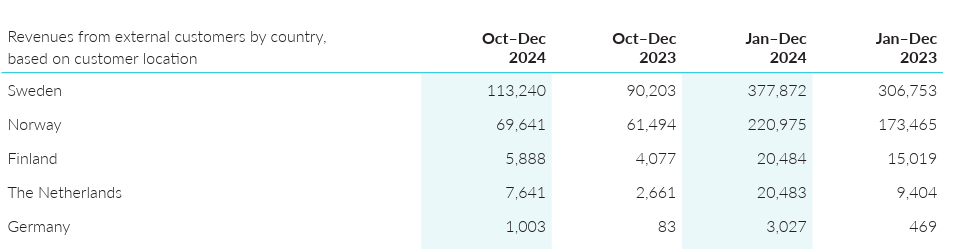 Kovaa tekemistä! Norjaan myynnin kasvu kuitenkin pieni, vaikka Babak sanoo että TRM-01 lähti vahvasti ja Norjaa priorisoidaan toimituksissa alkuvuonna. Hollanti ohitti Suomen, mikä on erittäin positiivista