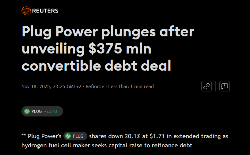 The market hates this, given Plug’s history of continuous dilution.