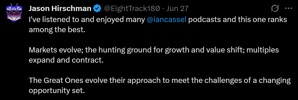 Tämä oli kyllä mielenkiintoinen podi. Kuittinen argumentoi mielestäni hyvin nykyistä markkinatilannetta (erityisesti Yhdysvalloissa) ja sitä, miten Trump ja hänen hallintonsa ovat ajamassa taloutta päin seinään omilla toimillaan - kuten hyökkäys FED:iä kohtaan, sekä tariffisekoilu. Podi toimi myös hyvänä herättäjänä itselleni siitä, että pitääkö tässä trimmata omaa vahvasti jenkkiteknologiafirmoihin painottuvaa salkkua osin defensiivisempään asentoon vaikka seuraavaksi puoleksi vuodeksi myöhemmin syksyllä. Toivon edelleen syys-lokakuulta kohtuullista korjausta alas, jossa saattaisi aueta ostopaikkoja ja sitten vaikka marras-joulukuulla katsoisi joitain myyntejä voittoja kotiuttaen.