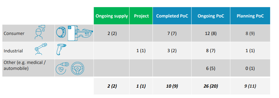 ”Planning PoC”-sarakkeessa on laskua edelliseen kvartaaliin ja uskoakseni se selittyy COVID-shokista aiheutuvista viiveistä. Vaikka jokaisen PoC-projektin koko ja merkitys yritykselle ei ole yhtä suuri, ”Planning/Ongoing PoC”-sarakkeet ovat yksi indikaattori Tlensin potentiaalin realisoitumisesta.
