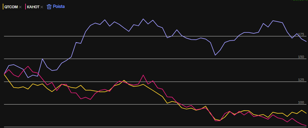 Investor sentiment, however, has changed, and it remains to be seen how investors, nervous about the decline in tech stocks, will be able to wait for Polight’s potential to materialize into results. Comparing stock prices between companies is dangerous, and I have tried to keep stock price chatter to a minimum, but as background (image below), Polight’s stock has risen (!) by 25 percent in the last 3 months, while its peers Kahoot and QT have retreated firmly into negative territory.