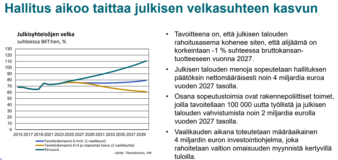 EU-komissiota ja Suomen velkojia ei uskoakseni erityisemmin kiinnosta, miten jokin kuvitteellinen hallitus toimisi tässä ja nyt. Orpon hallitus on tänä päivänä vastuussa ja juuri heidän on saatava tilanne hallintaan.