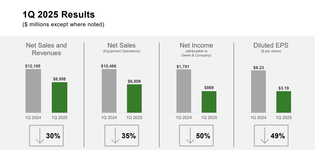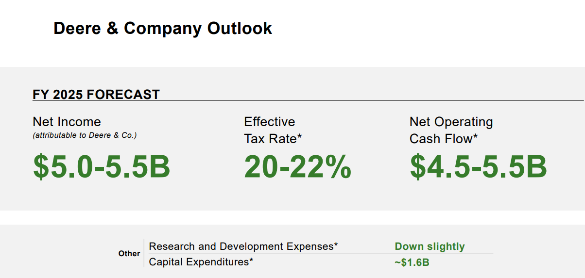 Deereltä eilen Q1. Ponssen näkökulmasta metsäsektorin näkymät ennallaan, eli säilyy ennallaan tai laskee 5% vuonna 2025. Kuten todettua, Deerellä mukana myös kokopuumenetelmä.