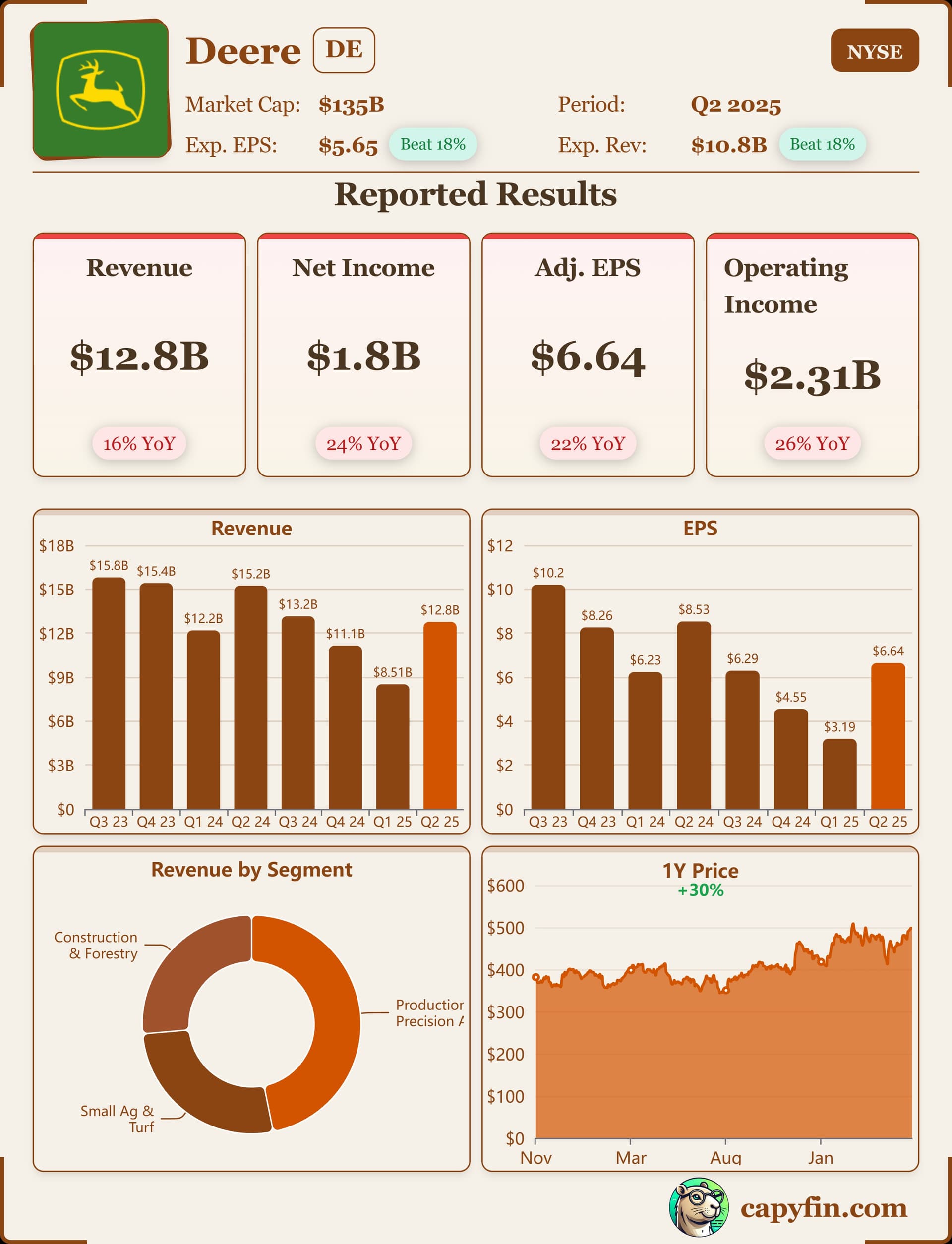 Ajattelin laittaa tännekin, jos kiinnostaa. Deeren tuloksesta voi saada jotain kiinnostavaa tietoa Ponssesta sijoituskohteena kiinnostuneita ajatellen. Ainakin Deerellä mm. metsäkonemyynti heikentyi kuljetusvolyymien pienentyessä.