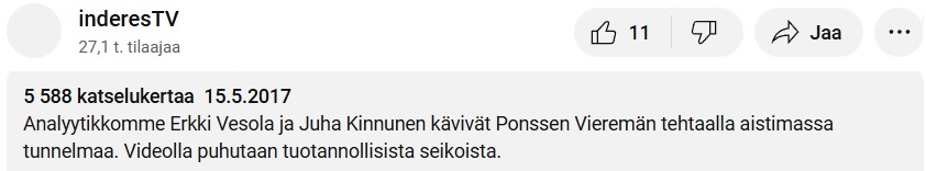 Ensimmäinen laaja raportti saatiin luettavaksi pari kuukautta Erkin Inderesillä aloittamisen jälkeen. Ensin toukokuussa InderesTV:ssä julkaistiin video Inderesin analyytikoiden vierailusta Ponssen Vieremän tehtaalle. Tämä oli muuten ensimmäinen InderesTV:ssä julkaistu video tehdasvierailulta. Tehdasvierailun jälkeen kesäkuussa 2017 ilmestyi ensimmäinen laaja raportti Ponssesta.