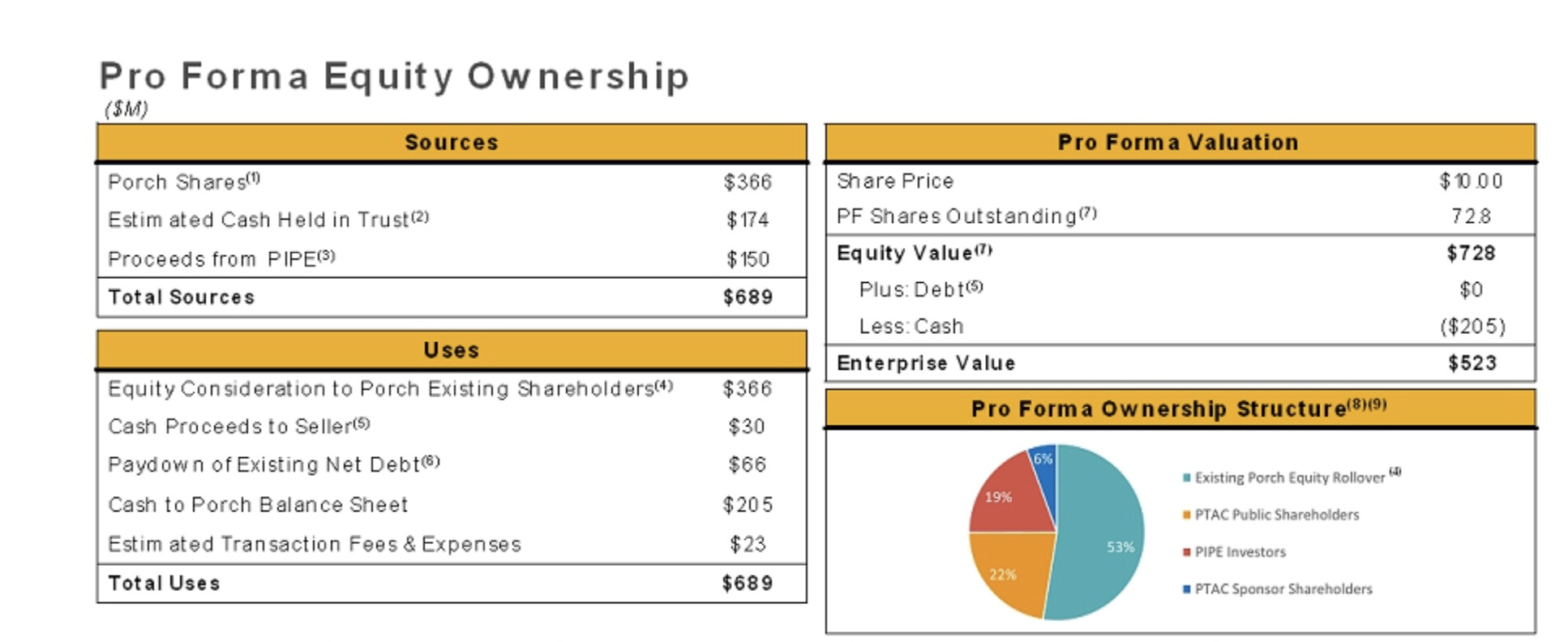 Porch sai tästä SPAC mergeristä kulujen ja velkojen maksun jälkeen noin 205 miljoona $, josta nyt siis käytetty hankintoihin 120 miljoonaa.