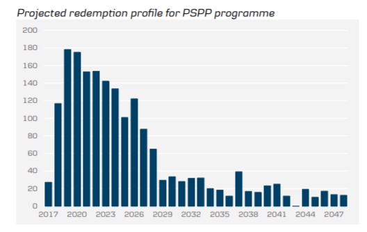 Juu toki, kiitos tarkentavasta kysymyksestä. Eli kuten tuolta yllä olevasta kuviosta on nähtävissä, erinäisten laskelmien perusteella on arvioitu, että EKP tekee uudelleeninvestointeja velkakirjamarkkinalle 160-180 miljardin euron edestä tänäkin vuonna. Tämä siis tarkoittaa sitä, että keskuspankkijärjestelmän hallussa olevia velkakirjoja erääntyy tällä summalla, ja EKP lupauksensa mukaisesti sijoittaa nämä takaisin velkakirjamarkkinalle.