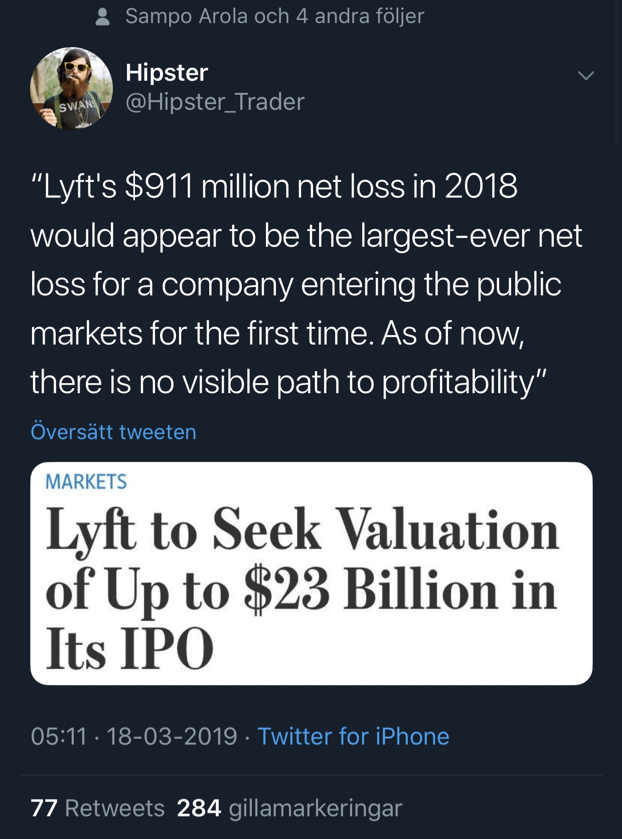 Jos joku miettii, jahtaako tällä hetkellä suuri määrä rahaa pientä joukkoa sijoituskohteita, Lyftin IPO antanee osviittaa.