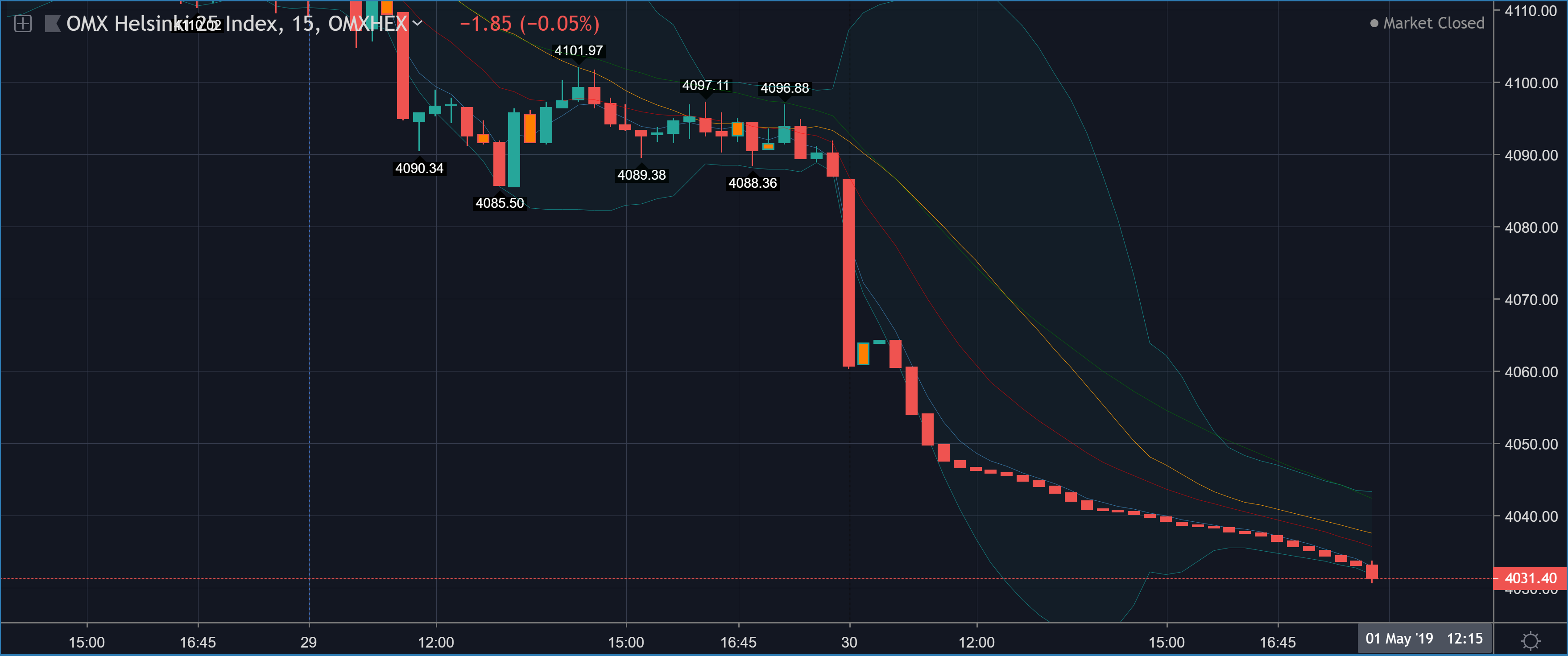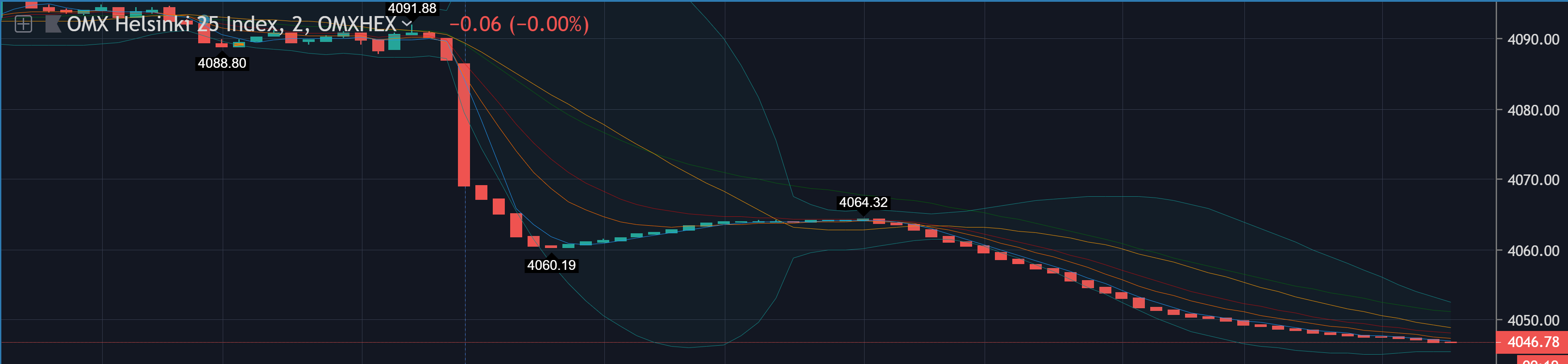 OMXH25 on ylimyyty 4H asti, vielä ei ole päivätasolla sentään.