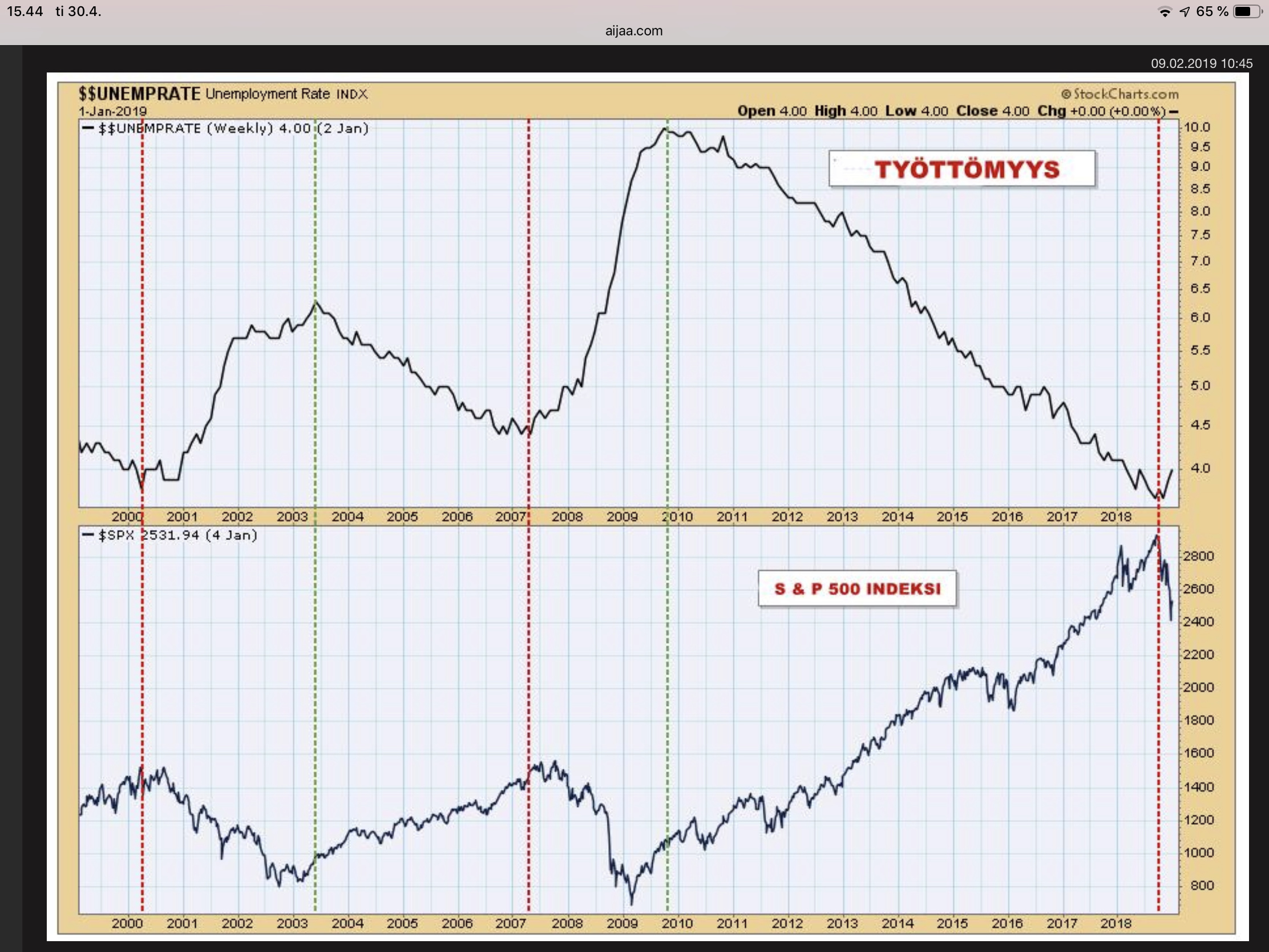 USA:n työttömyyden ja pörssi-indeksien peilikuvamaisen suhteen perusteella toisiinsa, en ennakoisi seuraavalle 3 vuoden jaksolle kovinkaan korkeita tuottoja jenkki-indekseistä. Enkä toki muualtakaan, kun jenkit kyykkää, muutkin kyykkää.