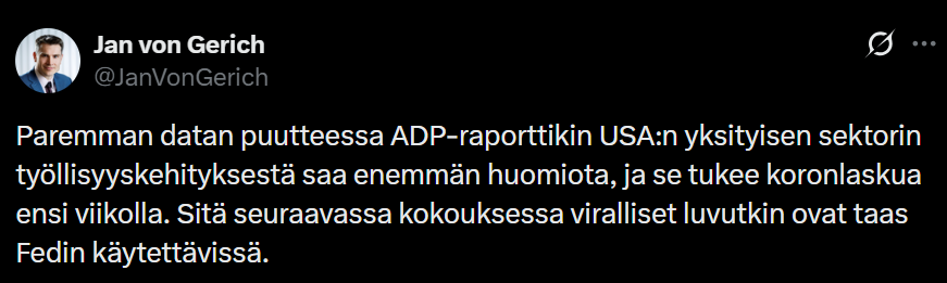 Nordea’s Jan tweeted about the US private sector employment development, and also a bit about interest rate cuts. ![]()