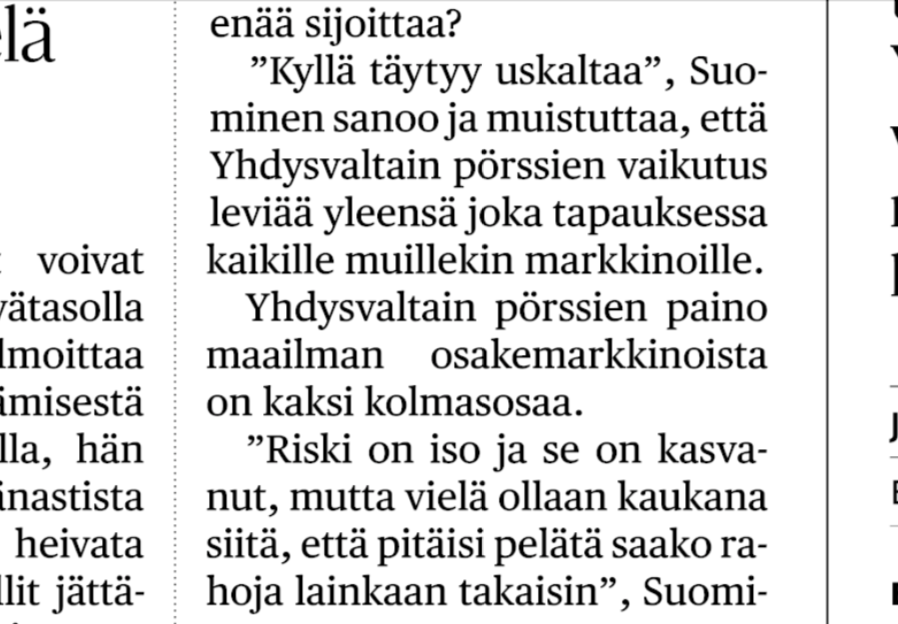 Quote from yesterday’s Helsingin Sanomat. Lippo Suominen, OP’s Chief Strategist for Wealth Management, is speaking.