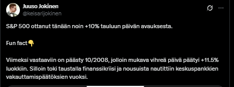 According to my logic, Finland now has more opportunities to fill the trade relationship vacuum created by American foolishness, and because at the same time we received concessions from the Americans, it seems that the biggest loser in this, according to the latest situational information, is the United States. This situational information, however, updates differently on the hour and half-hour.