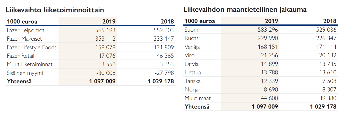Fazer-konsernin 2020 tilinpäätös julkaistaan vasta viikolla 15, joten nämä luvut tilinpäätöksestä 2019.