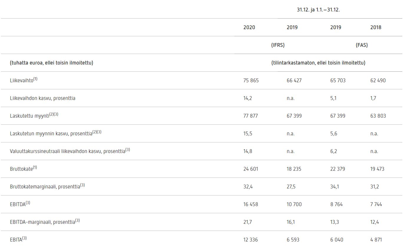 Liikevaihdon kasvu 2015 - 2018 ei ole erityisen mairittelevaa, mutta ei tästä varmaan mitään kasvutarinaa haetakaan vaan tasaista osinkovirtaa. Minkälaiset on 2020 luvut ![]()