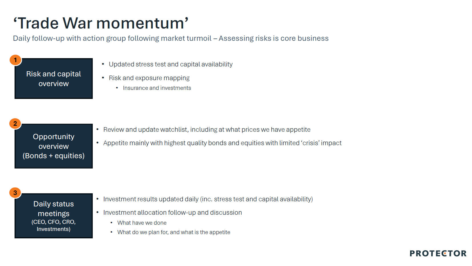 Kilpailijat sijoittavat pääasiassa matalan riskin velkakirjoihin, minkä johdosta sijoitusten tuotto jää Protectoria pienemmäksi. Toisaalta tämä mahdollistaa sen, että vakavaraisuuspääoma suhteessa vakuutusmaksutuloon on Protectoriin nähden pieni (pääoman tarve sitä suurempi mitä riskesempiin arvopapereihin sijoittaa).