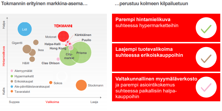 Sotkuisen kotoinen myymälä voi myös vaikuttaa positiivisesti halpaan hintamielikuvaan. Tokmannihan on ainakin aiemmin puhunut sijoittajamateriaaleissaan hintatason sijaan nimenomaan hintamielikuvasta: